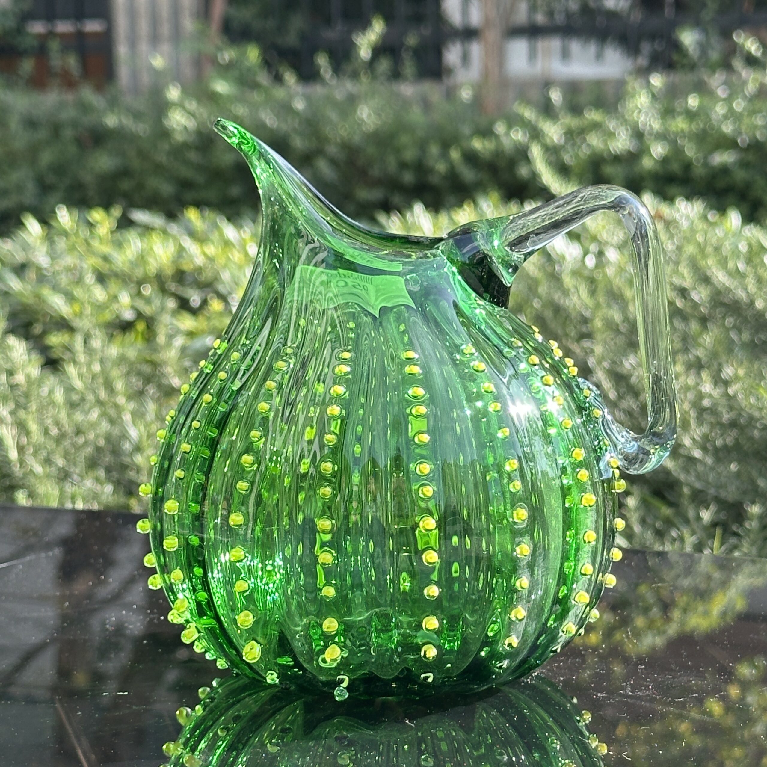 El Yapımı Cam Sürahi Koyu Yeşil 17 cm