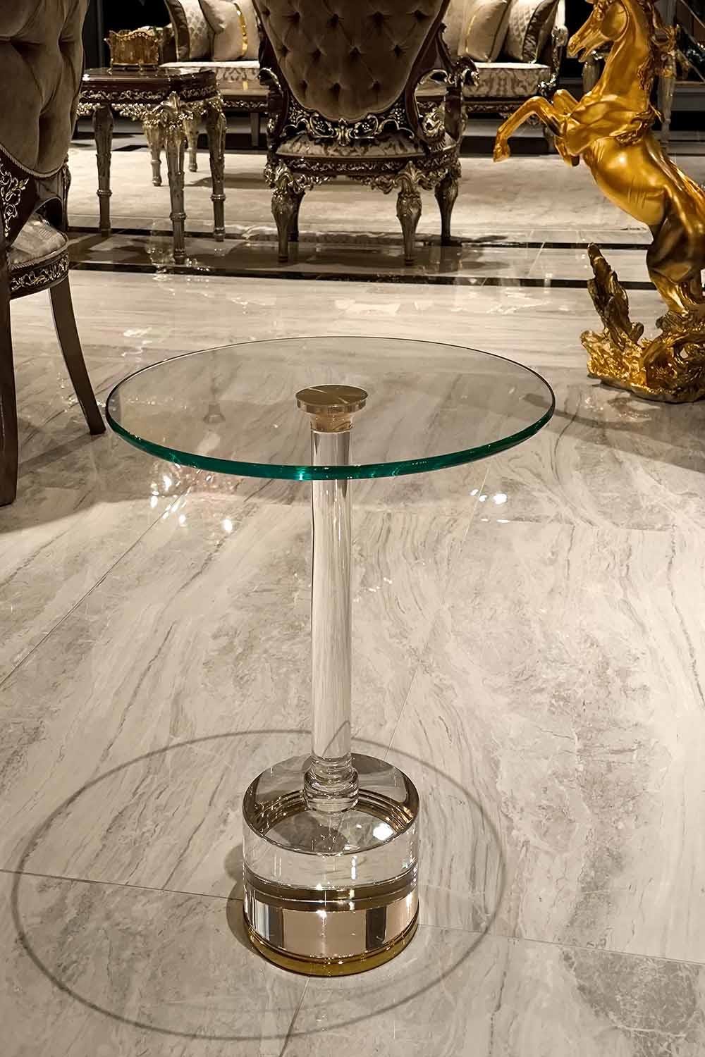 Bu özel tasarım sehpa; oturma odası, salon ve yatak odalarında zarif bir odak noktası oluşturur. Pleksi ve camın uyumu, gold metal detaylarla birleşerek mekâna güçlü ve şık bir karakter kazandırır. Kahvenizi yudumlarken bile gözlerinizi alamayacağınız zamansız bir tasarım.