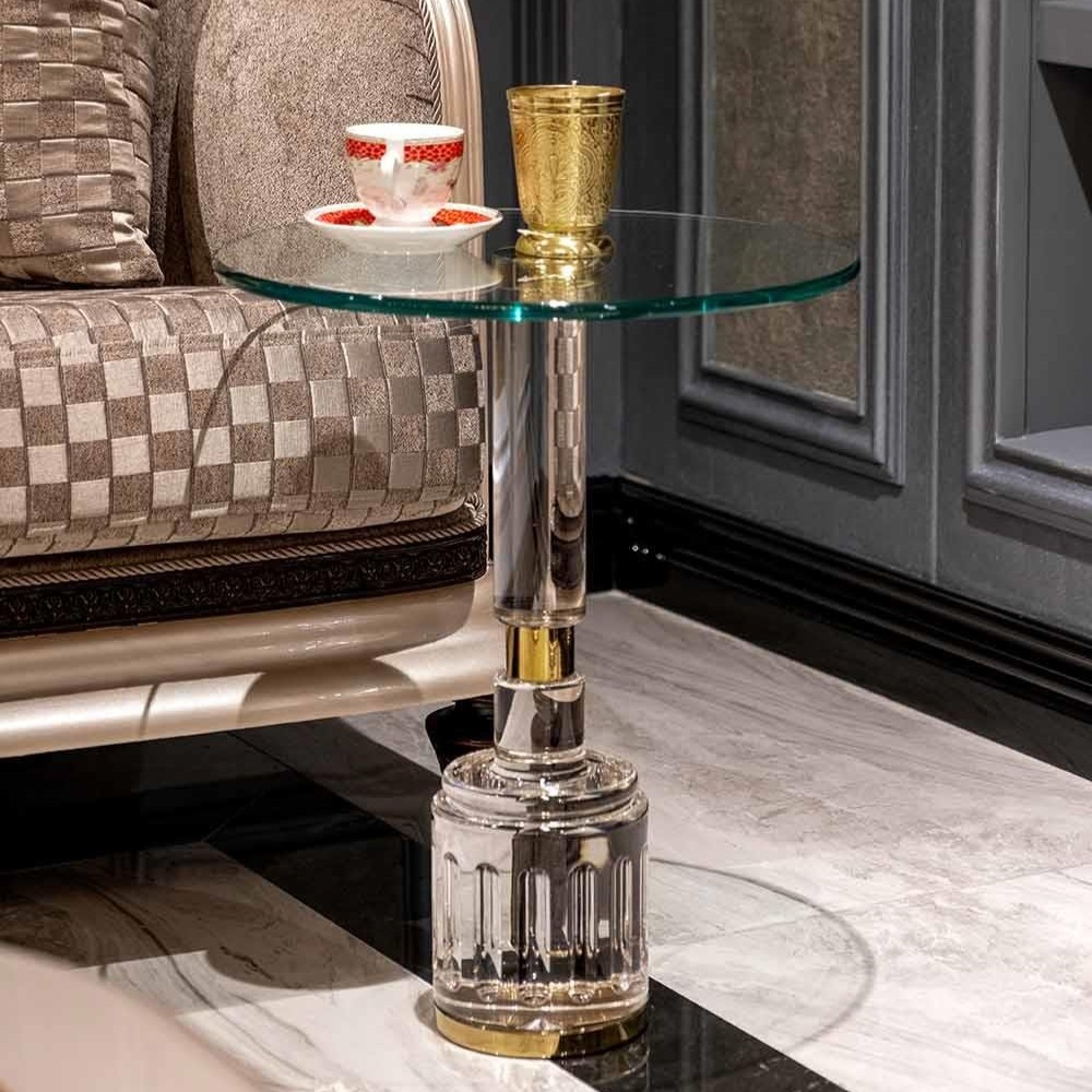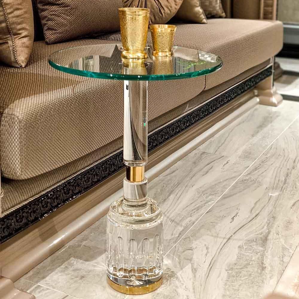 Bu özel tasarım sehpa; oturma odası, salon ve yatak odalarında zarif bir odak noktası oluşturur. Pleksi ve camın uyumu, gold metal detaylarla birleşerek mekâna güçlü ve şık bir karakter kazandırır. Kahvenizi yudumlarken bile gözlerinizi alamayacağınız zamansız bir tasarım.