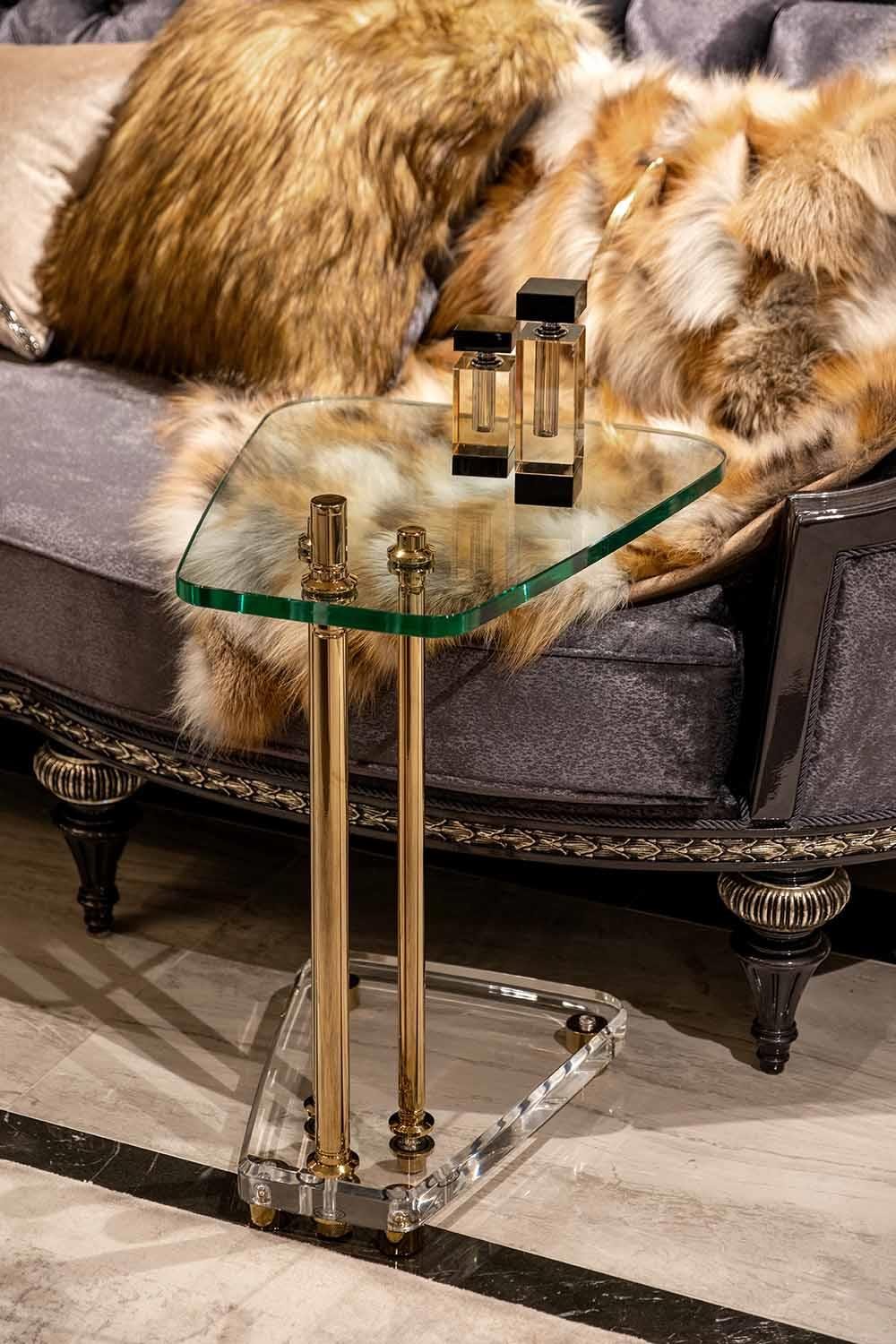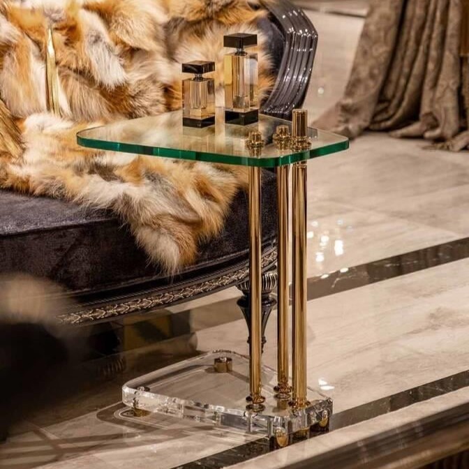 Gold Metal Ayaklı Pleksi C-Sehpa