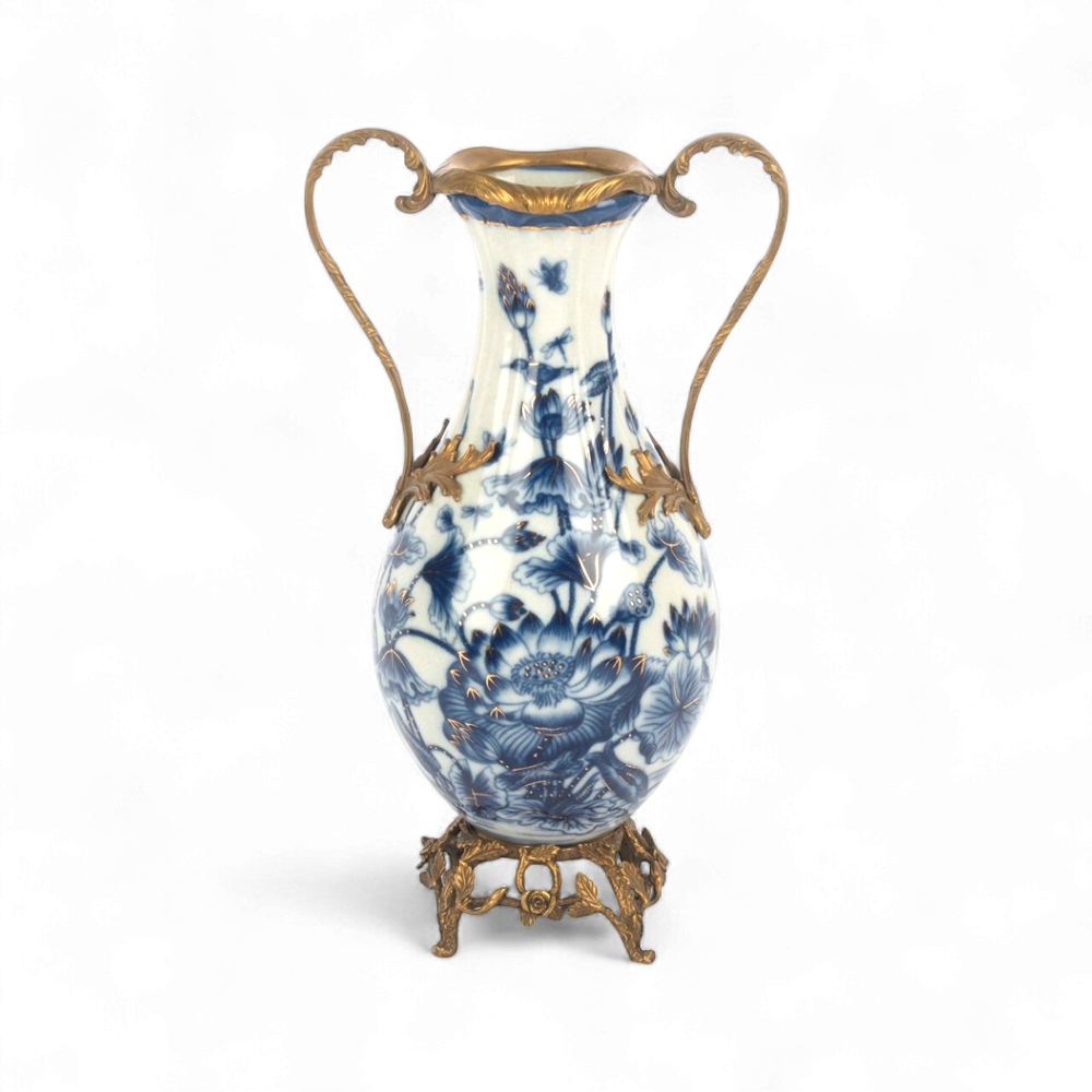 - Renk: Krem zemin üzerine mavi floral desenler, antik altın tonlu metal ayak ve kulplar