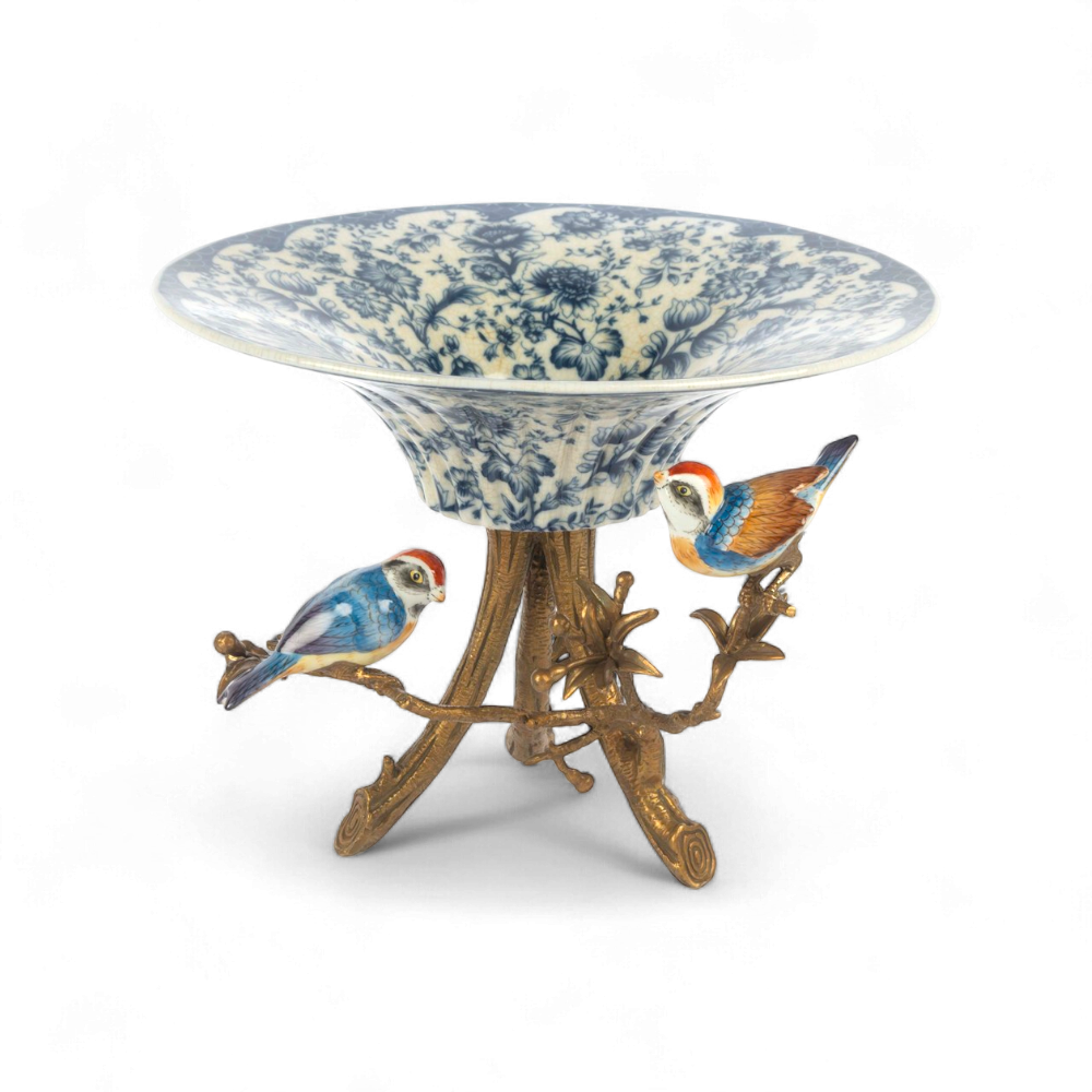 Mavi Kuş Figürlü Dekoratif Ayaklı Kase