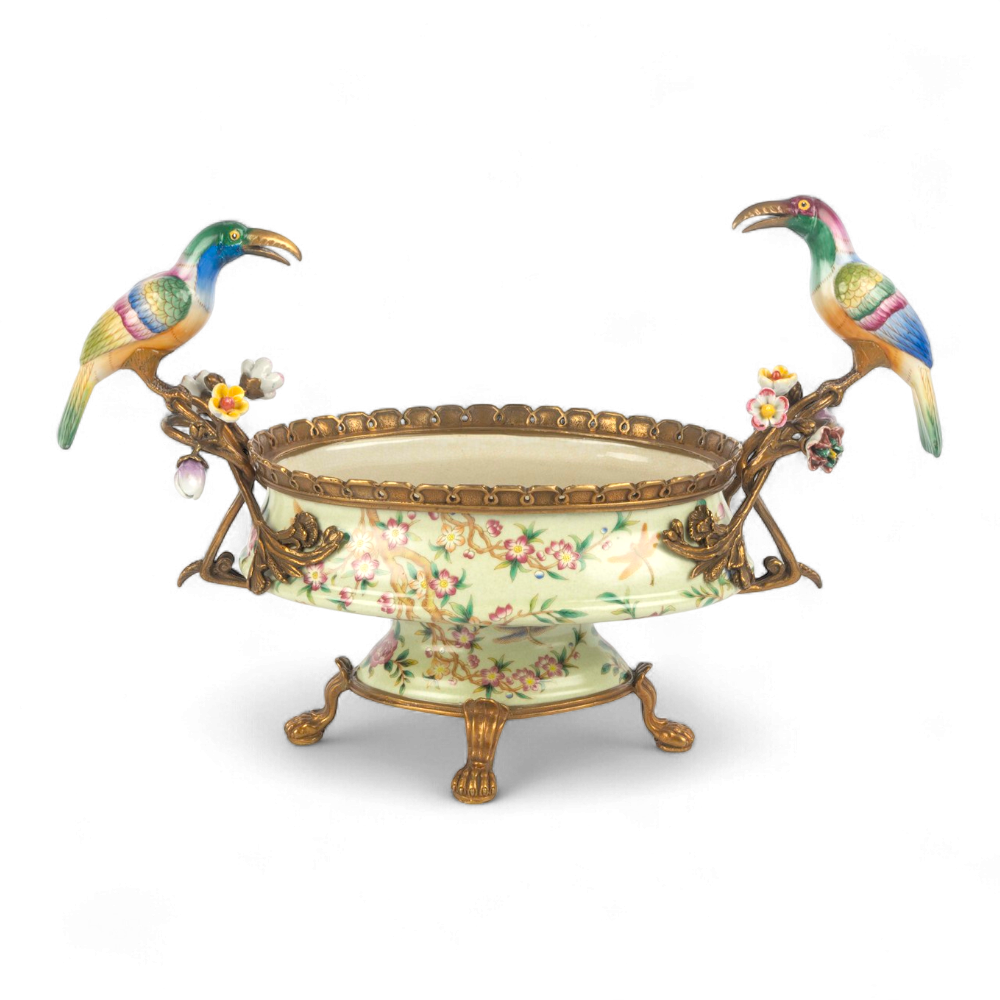 Yeşil Kuş Figürlü Dekoratif Kase – 45×35 cm